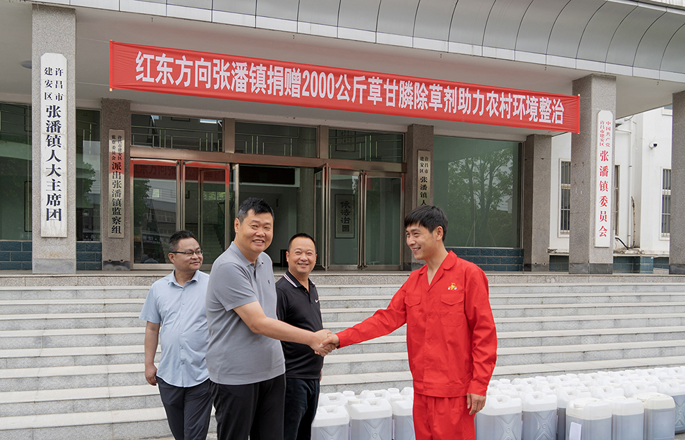 為扎實(shí)推進(jìn)鄉(xiāng)村振興戰(zhàn)略,改善農(nóng)村人居環(huán)境,助力生態(tài)宜居鄉(xiāng)村建設(shè),5月13日上午,紅東方向張潘鎮(zhèn)人民政府捐贈2000公斤草甘膦除草劑,用于農(nóng)村道路、溝渠及公共區(qū)域的雜草治理,以實(shí)際行動助力當(dāng)?shù)剞r(nóng)村環(huán)境整治工作。張潘鎮(zhèn)黨委書記羅天堯?qū)t東方的愛心捐贈表示衷心感謝。